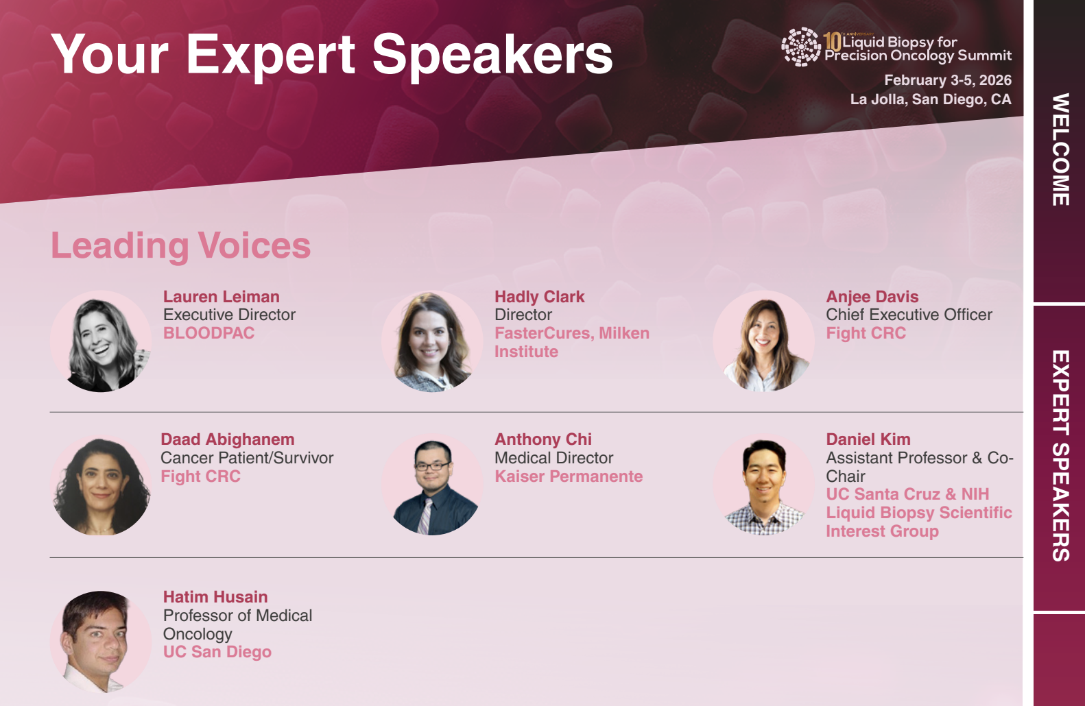 The Liquid Biopsy for Precision Oncology Summit celebrates its 10th anniversary in 2026, marking a decade of progress in biomarker science, regulatory alignment, and clinical adoption. The meeting will host more than 250 experts and feature discussions on circulating tumor DNA (ctDNA), minimal residual disease (MRD), regulatory pathways, reimbursement, and the future of precision medicine across cancer types