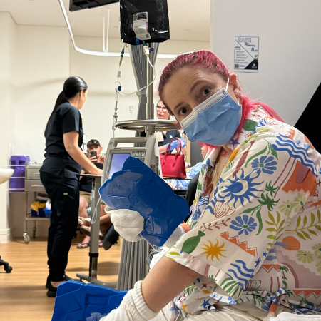 Hubby and I were moving from Australia back to his native USA. I was doing pre move medical checks and blood tests came back super lower iron and hemoglobin. Dr asked if I had blood when I went to the toilet – I said yes but not often. She said I’m not letting you move until you have a colonoscopy. Hubby was already in the USA when I had my colonoscopy. Told that day they has found cancer, more scans and told that night by my surgeon that it was Stage 4 at 36. Hubby and all our stuff got turned around back to Aus. 12th Dec 9.5hr surgery which was a success – all cancer gone and clear margins. I am now round 9 of 12 of clean up chemo. Our boxes are still packed and sitting in the spare room!