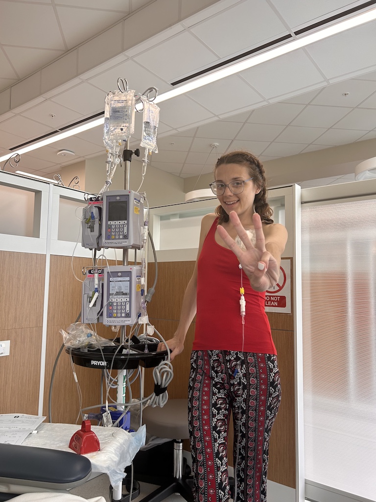 I was checked in for about a week, and I went septic again from healing fluid left in my pelvis. I went back to the ER for another procedure where they drained the fluid, and I was there for another week. They gave me a port to get my chemotherapy and I was dropping weight like crazy. I went from 120 lbs to 100 lbs in this timeframe of a month.